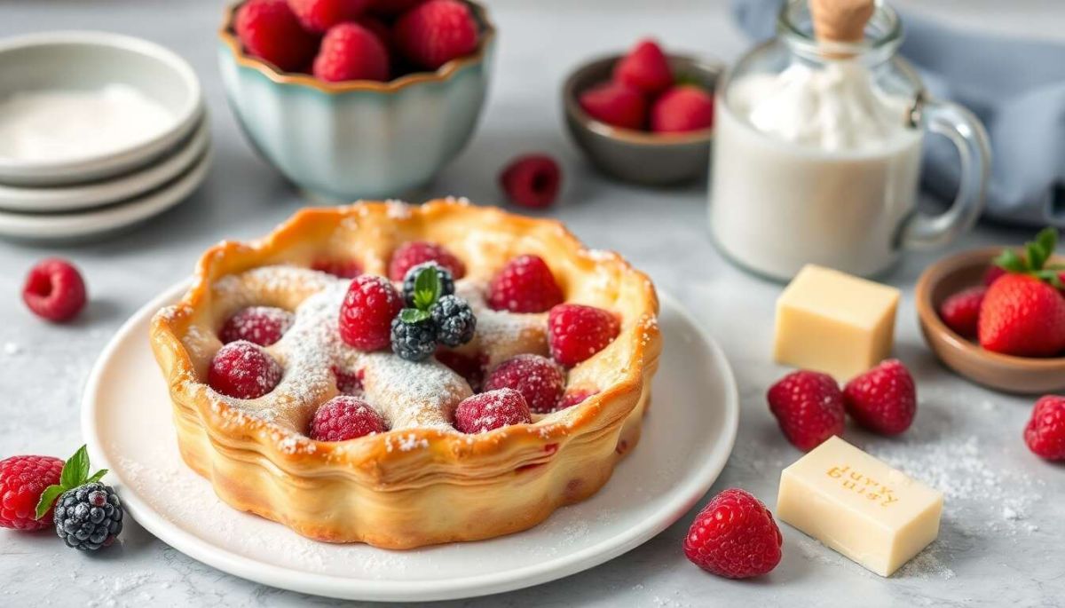 Ce dessert traditionnel français, originaire de la région du Limousin, est habituellement préparé avec des cerises, mais il se prête aussi à de nombreuses variations avec d'autres fruits tels que les framboises.
