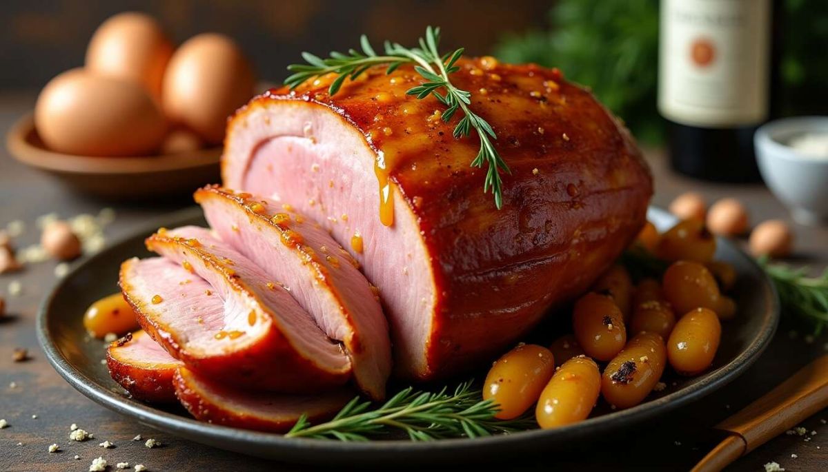 Le jambon à l'os est un plat traditionnel souvent associé aux occasions festives. Il est idéalement servi avec des garnitures simples qui mettent en valeur sa saveur.