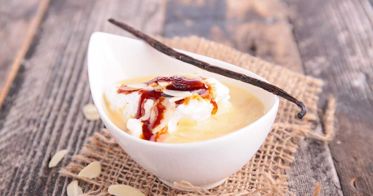 - Finition : Remplissez des coupes de crème anglaise froide et déposez délicatement les blancs en neige. Décorez avec le reste des pralines roses.