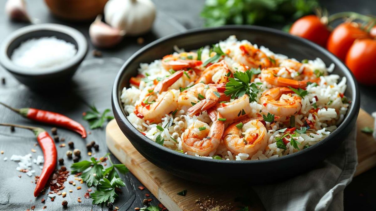 Le riz aux crevettes est un plat emblématique des cuisines fusion, alliant terre et mer. N’hésitez pas à personnaliser cette recette avec des légumes croquants ou un peu de piment pour plus de caractère.