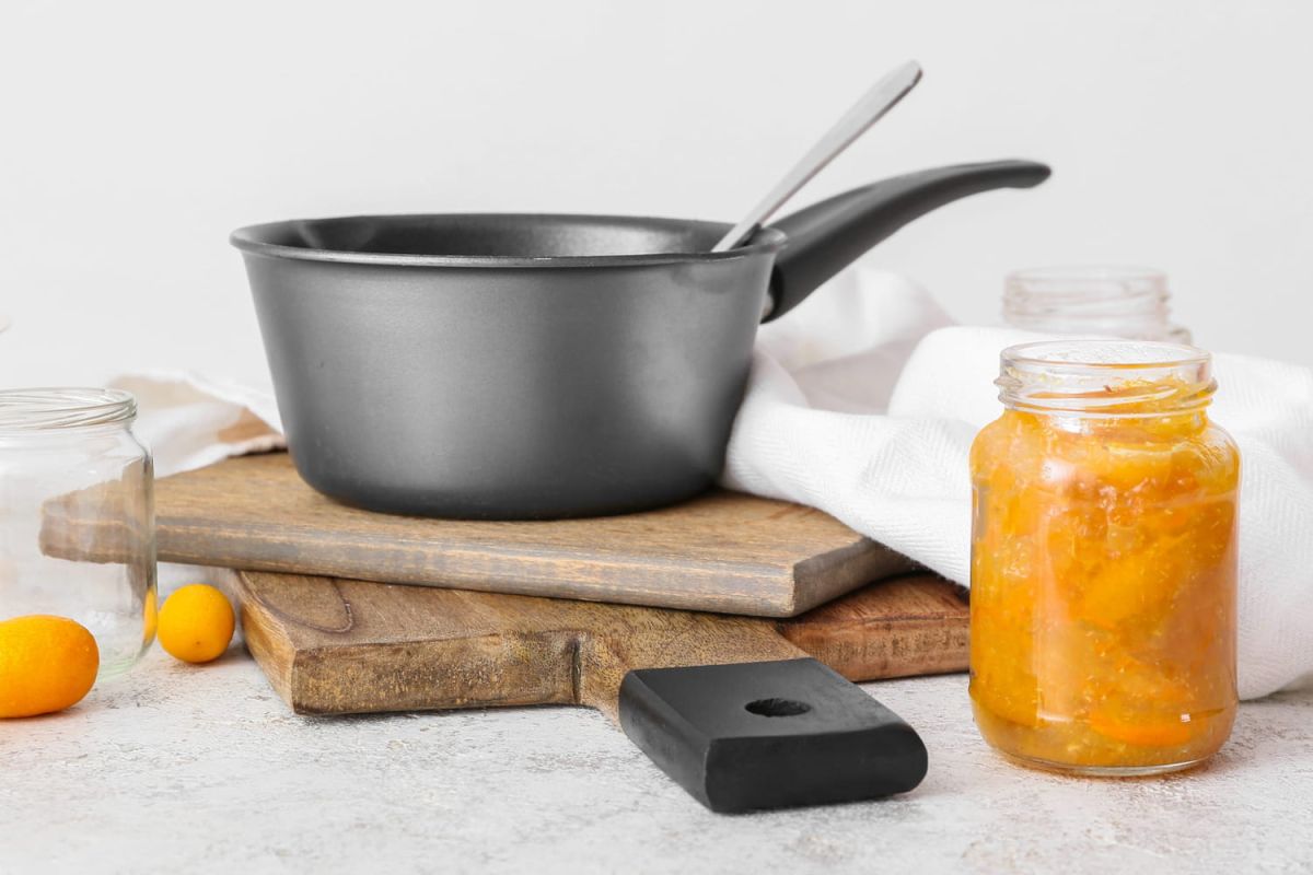 “çà, c'est très important”, souligne le chef en présentant des bocaux soigneusement nettoyés. avant de les remplir, même s'ils ont déjà été lavés, il est impératif de les stériliser. ce traitement thermique détruit les bactéries et microorganismes présents. vous n'avez pas besoin d'un stérilisateur : une grande casserole suffira ! “immergez le bocal dans de l'eau chaude, mais pas bouillante pour éviter un choc thermique”, explique-t-il. en plongeant le bocal dans l'eau frémissante, il couvre la casserole et porte le tout à ébullition. “dès que ça bout, retirez le pot”, conseille le chef, utilisant des maniques pour éviter les brûlures. placez le bocal à l'envers sur une surface propre afin qu'il sèche à l'air. répétez ce processus avec les autres bocaux.