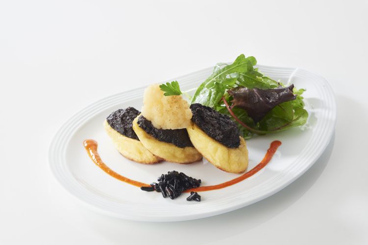 6. Riz noir frit : Cuisinez le riz noir selon les instructions, puis égouttez-le. Séchez-le à l'aide de papier absorbant avant de le frire quelques secondes à 140°C. Égouttez et salez.
