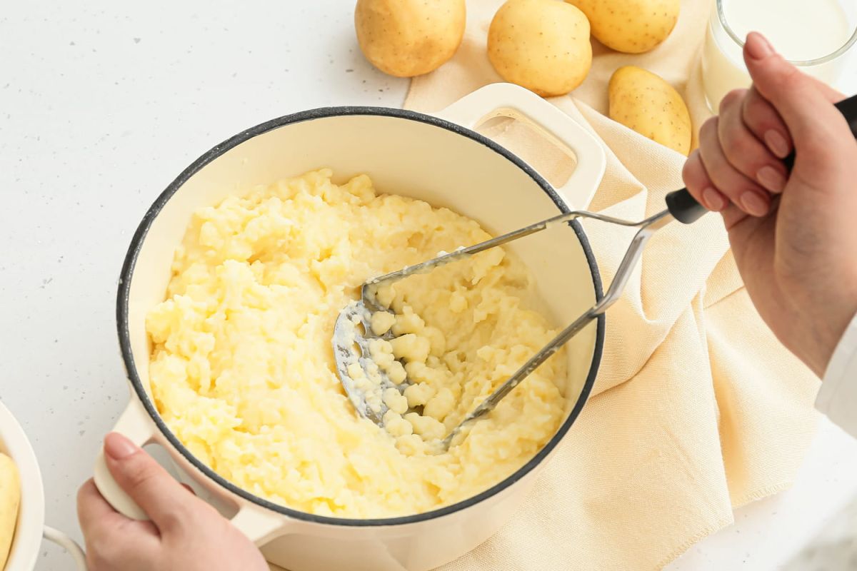 Le chef Juan Arbelaez a partagé une astuce sur Instagram qui permet de simplifier le processus de préparation. Au lieu de cuire, peler une à une, et écraser les pommes de terre séparément, optez pour une écumoire retournée. Cette méthode consiste à pousser les pommes de terre cuites à travers l’écumoire : la chair passe tout en laissant la peau en place. Une solution rapide qui réduit le temps de préparation et limite le besoin d’ustensiles multiples.